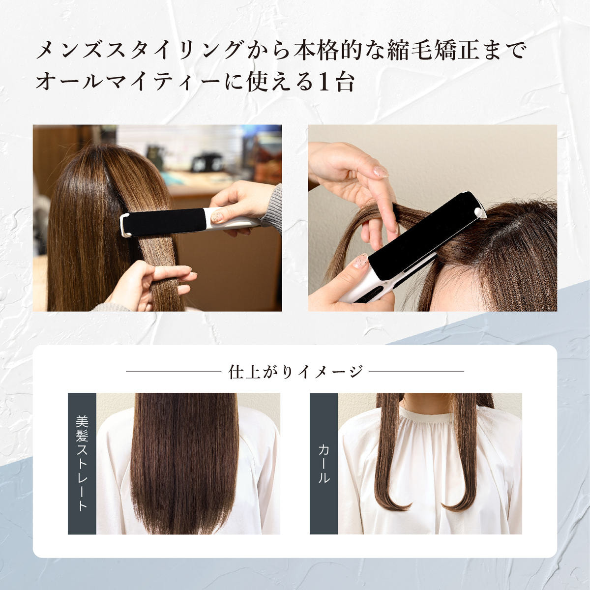 髪へのダメージを軽減する特殊プレートや、ねじれ・断線に強いコードなどを備えており、安心して施術がおこなえます。