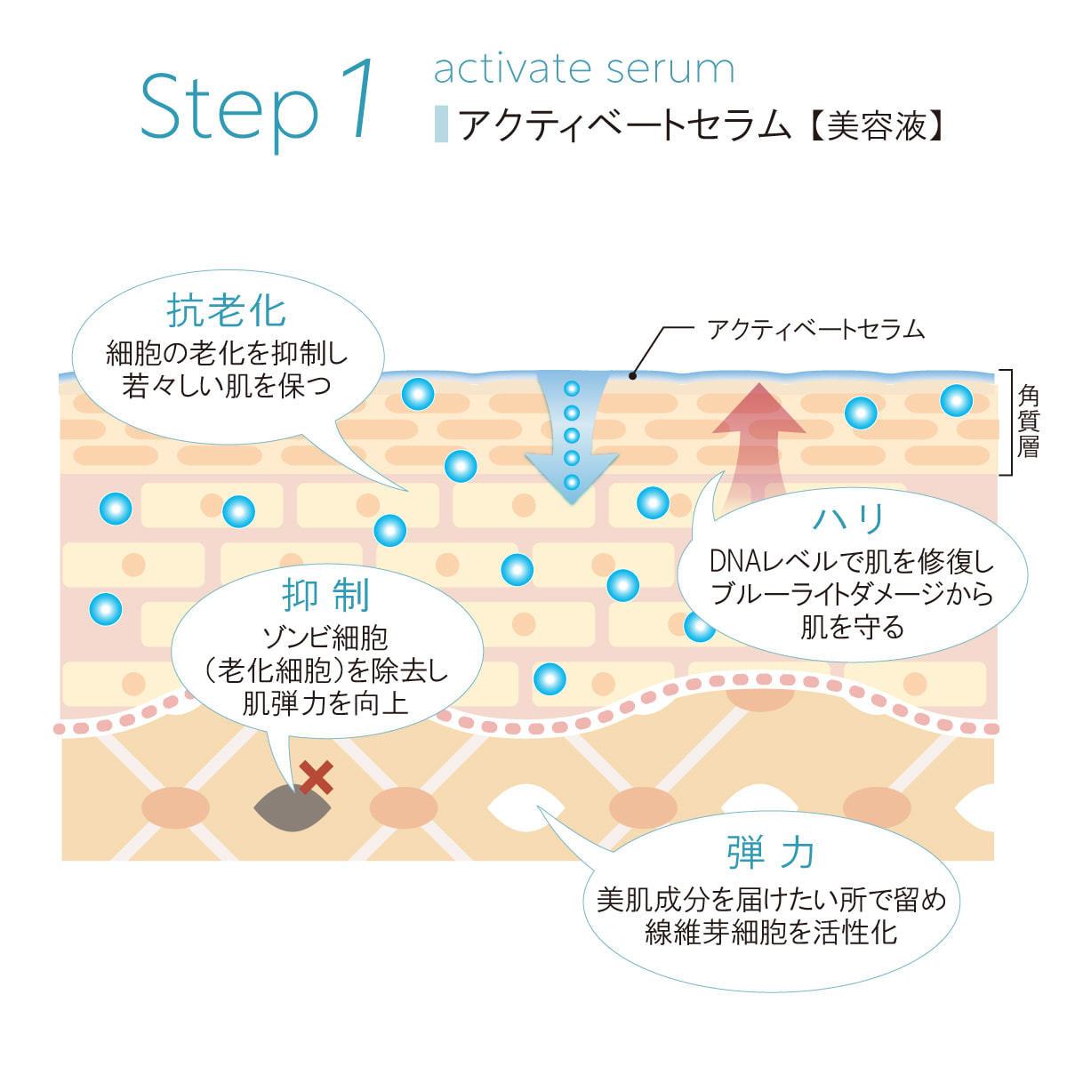 肌の老化現象のメガニズムに着目し、エイジングケアを多角的にサポートする美容液。