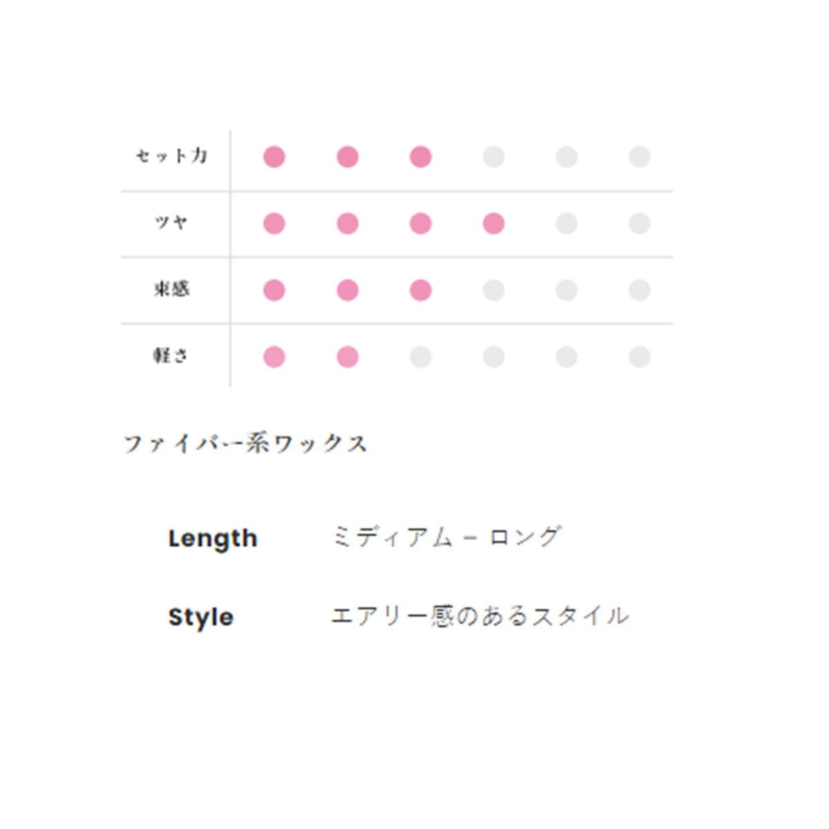 エアリー感のある軽い動きを、スムースにキープするファイバー系ミディアムワックス。