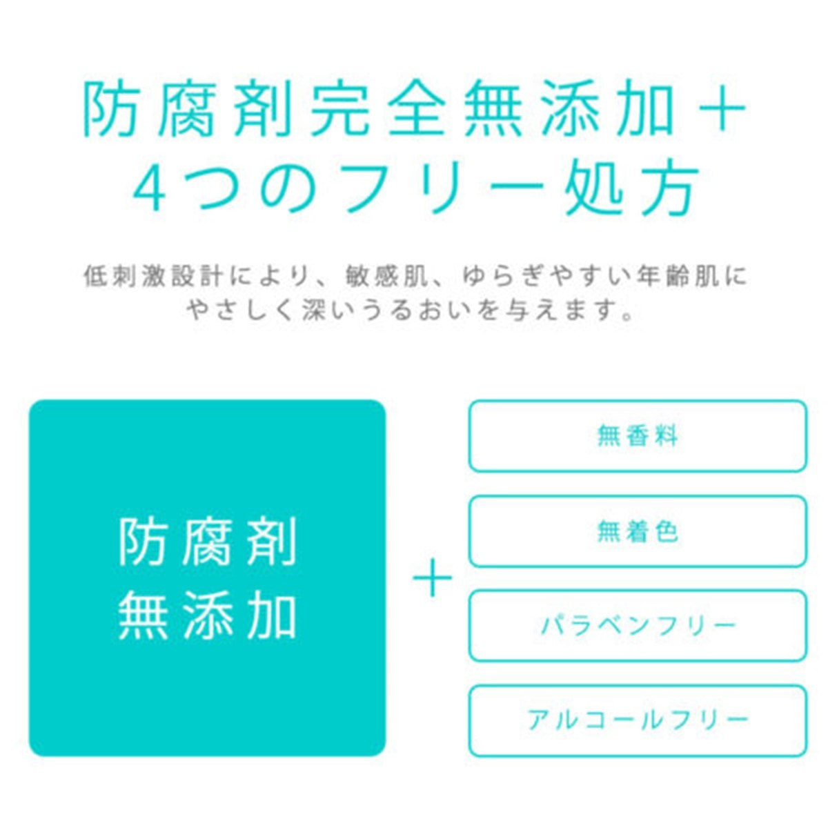 敏感肌の方に優しい防腐剤完全無添加、無香料、無着色、パラベンフリー、アルコールフリー処方にこだわっています。