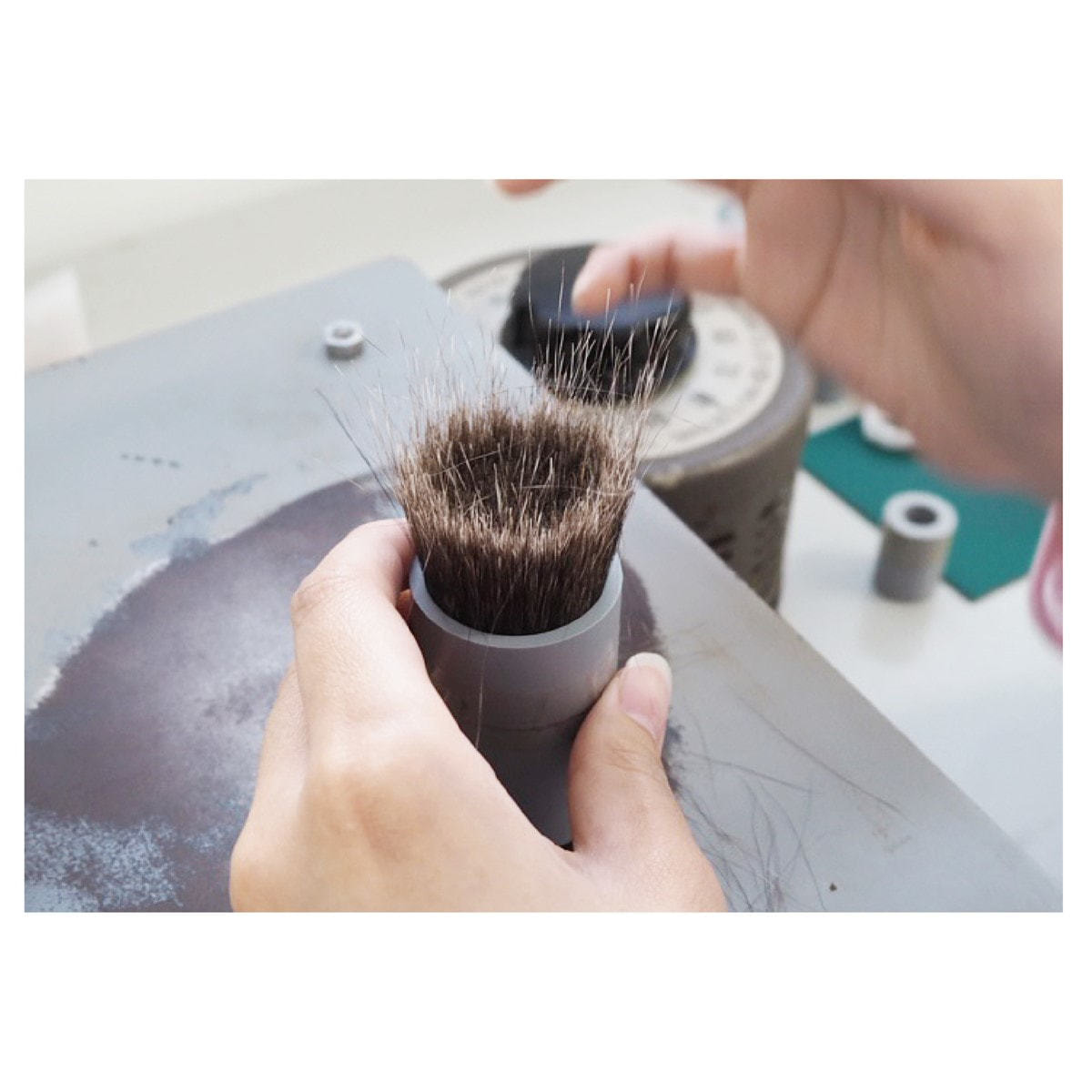 肌に馴染みやすい角度の筆先。20°カットのパウダーブラシ。